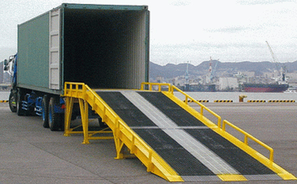 2、叉車可以直接通過它從地面駛?cè)胴涇嚿线M行裝卸作業(yè)。