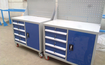 2、標(biāo)準(zhǔn)型工具車是由各種型號(hào)的工具柜增加頂框和底部腳等移動(dòng)部件而組成。