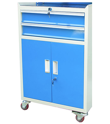 2、標(biāo)準(zhǔn)型工具車是由各種型號的工具柜增加頂框和底部腳等移動部件而組成。